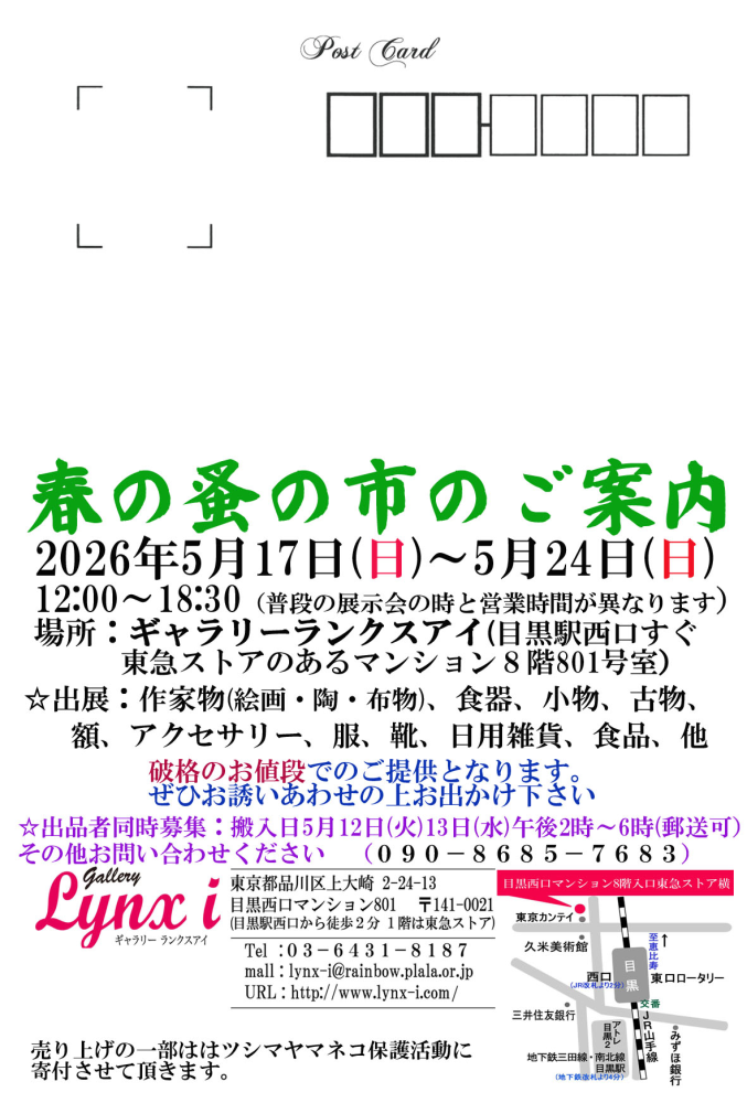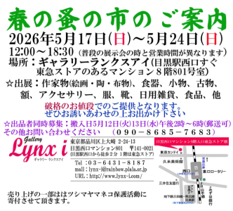 春の蚤の市のご案内です せひお誘いあわせの上お出かけ下さい ★出品者同時募集:搬入日5月12日(火)13日(水)午後2時~6時(郵送可) その他お問い合わせください。