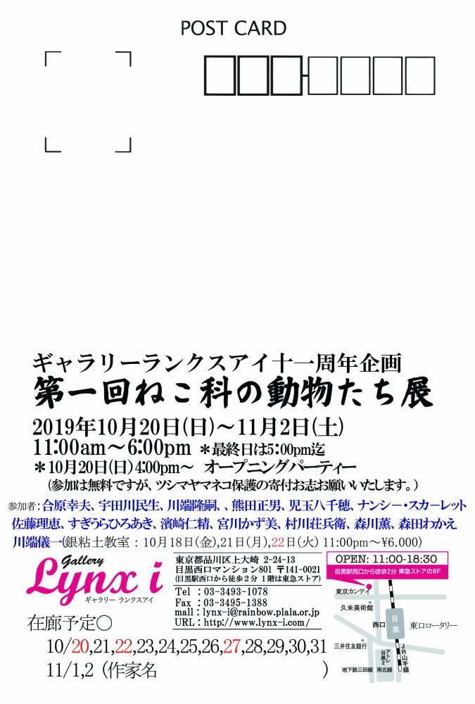 ギャラリーランクスアイ企画 「第1回ねこ科の動物たち展」を開催いたします。