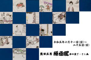 新聞小説・南原幹雄著「江戸の嵐」連載の挿画/宮部みゆき著「幻色江戸ごよみ」の装丁/講談社・石川英輔著「大江戸遊仙記」「大江戸仙境記」の装丁/校成社出版・絵本・丘修三著「だいだいだいだ〜きらい」の挿画/講談社・高橋三千綱著「江戸の若様」の装丁